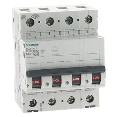 INTERRUTTORE MAGNETO TERMICO SIEMENS 3P+N 4 MODULI 32 AMPER 6KA ICN 6000A